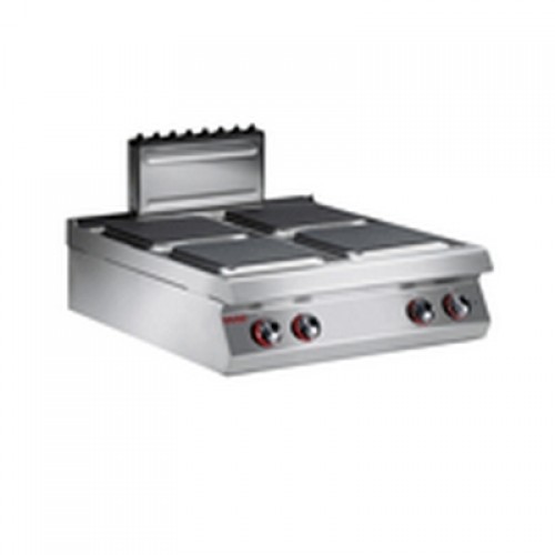 18-10 stainless steel top 20/10 thickness. Fully sealed cooking plates, fitted with thermal protection devices. Each 4 Kw plate is controlled by a 5-position switch.